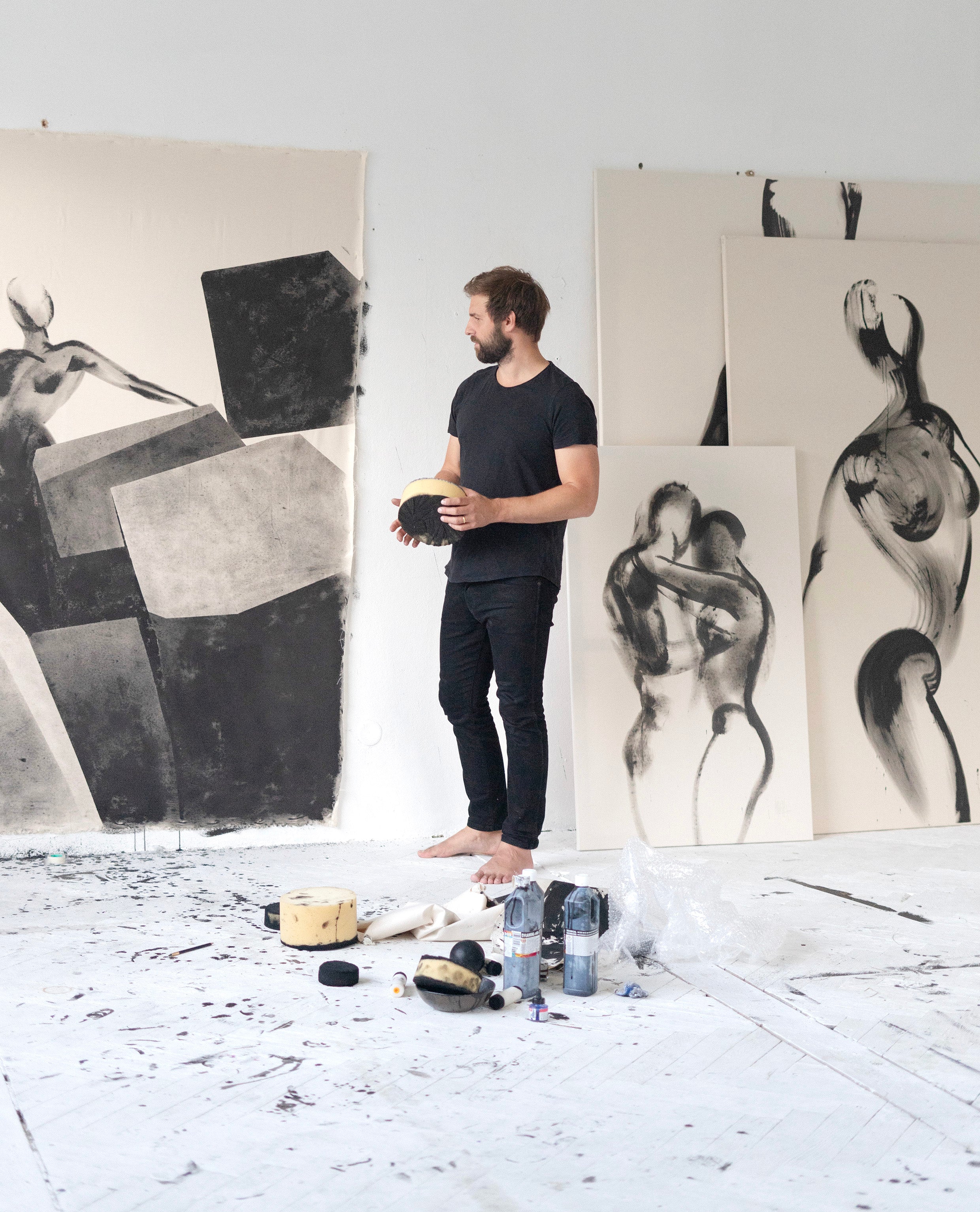 Milan Sodoma is a contemporary Czech visual artist based in Prague. His work combines minimalist aesthetics with intuitive gesture, using black ink as a central visual and symbolic element. Working primarily on large cotton canvases, often without preliminary sketches, his paintings emerge in a single, uninterrupted flow, balancing formal reduction with spiritual depth.