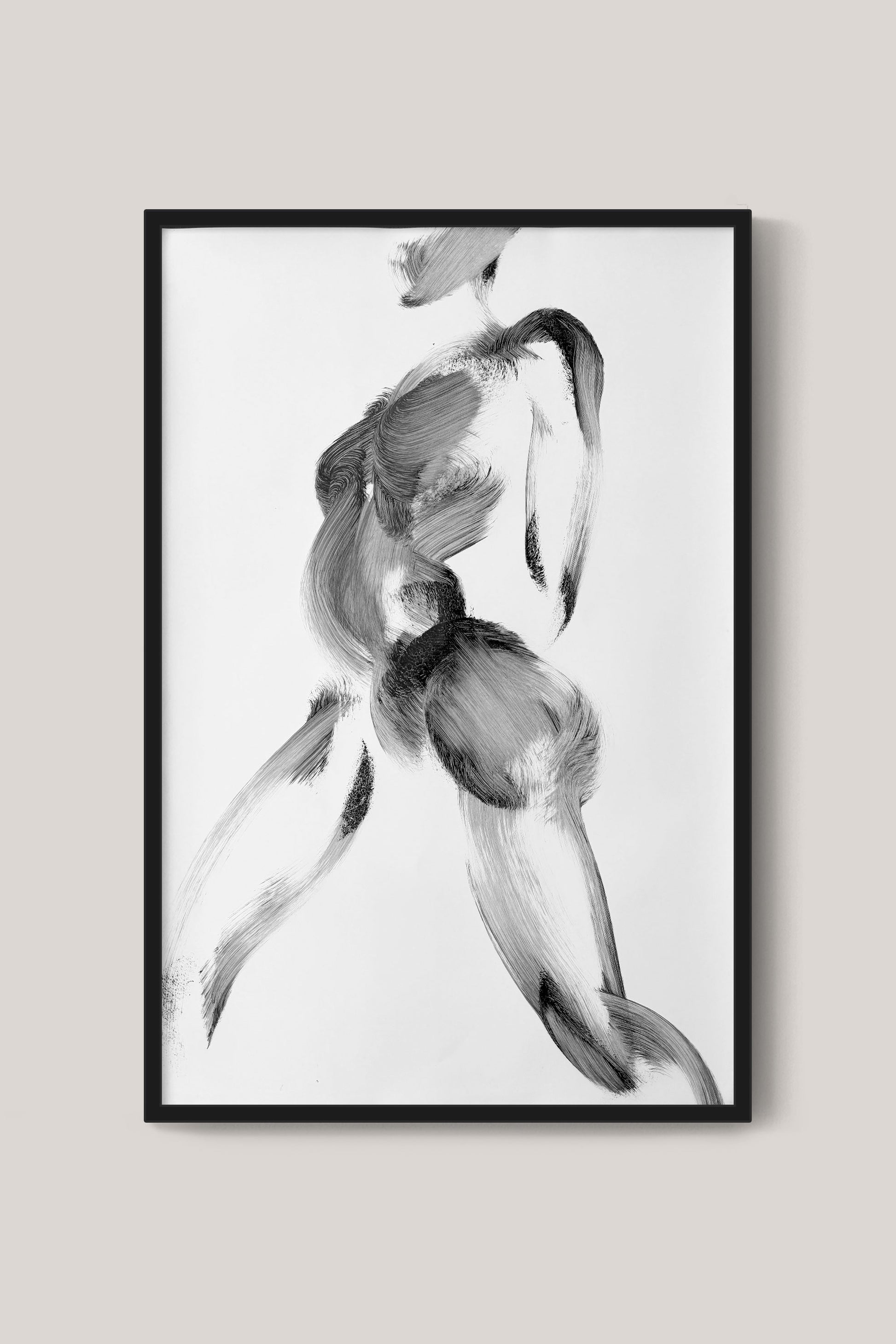 Ink on paper is a medium significant to Sodoma for its immediacy and honesty, perfectly aligning with his minimalist approach. Framed in solid black wood with a clean, simple finish.