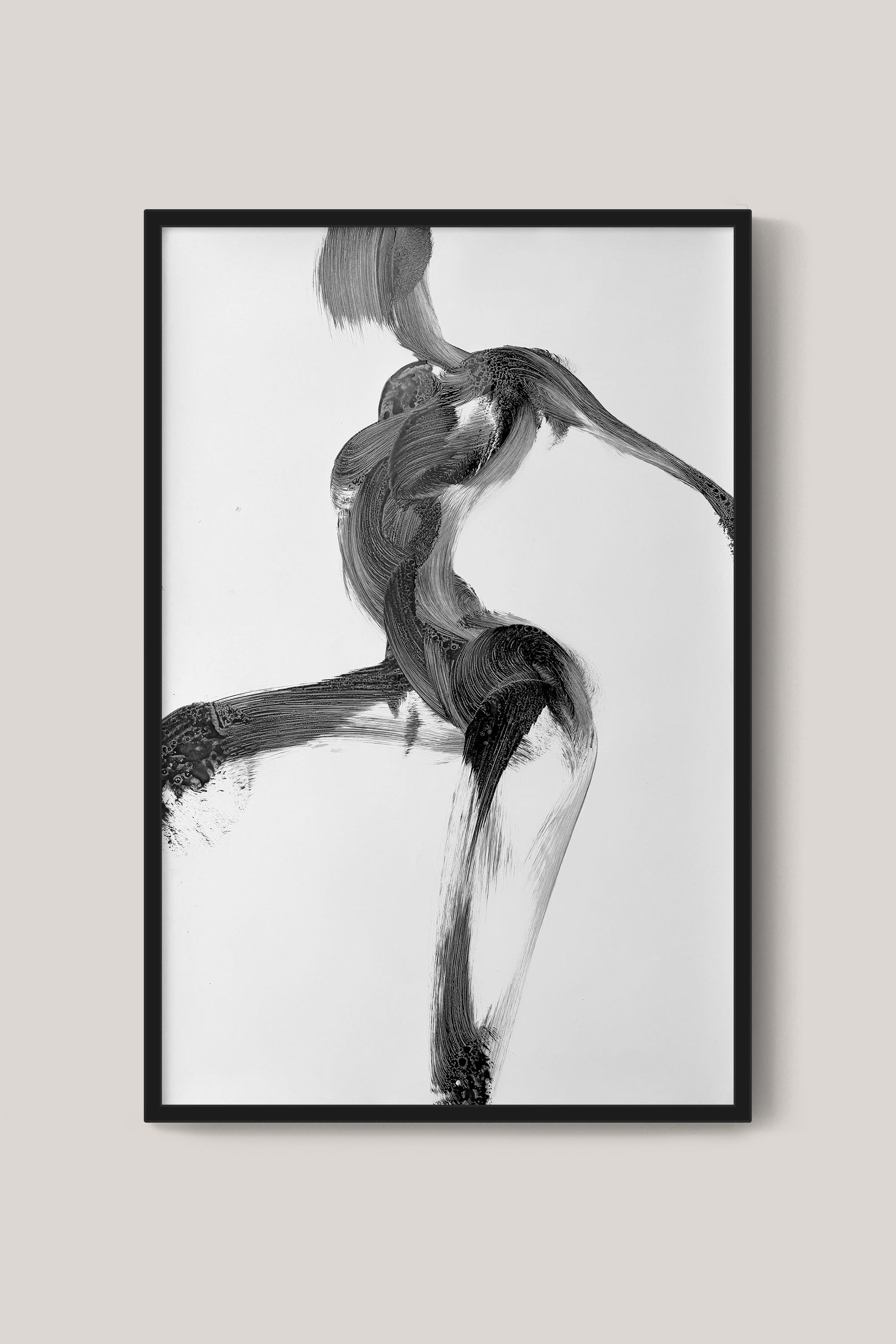 Ink on paper is a medium significant to Sodoma for its immediacy and honesty, perfectly aligning with his minimalist approach. Framed in solid black wood with a clean, simple finish.